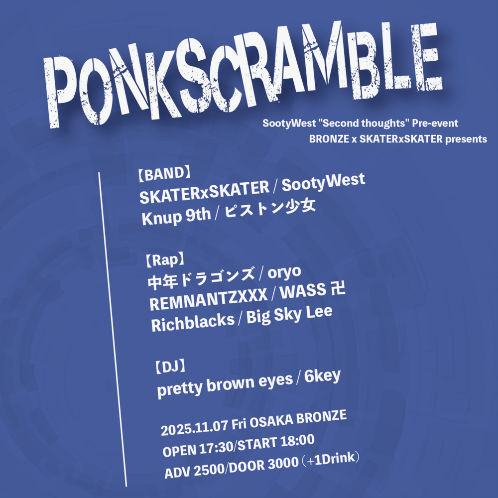 🎫 ADV ¥2,500 / DOOR ¥3,000 (+1drink)